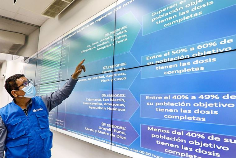Las regiones con el menor avance de vacunación son Ucayali, Puno, Loreto y Madre de Dios, con menos del 40% de su población objetivo vacunada con dos dosis.
